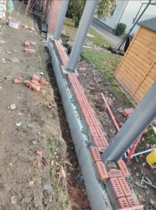 ​​Die Verwendung von Betonpfeilern mit Bewehrung im Fundament